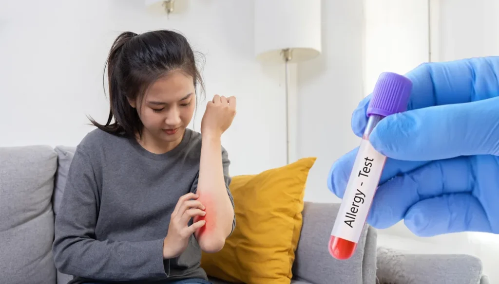 Gejala – gejala ini jika tidak segera ditangani akan menganggu aktivitas, bahkan dapat mengancam keselamatan jiwa. Penanganan utama dapat mengatasi kasus alergi adalah mengetahui jenis alergen atau faktor pemicu nya. Perihal mengetahui cara menghindari faktor pemicu alergi tidak selalu mudah, terutama beberapa jenis alergen. Oleh karena itu, diperlukan pemeriksaan alergi yang akurat, salah satunya dengan pemeriksaan darah. Tes darah dilakukan dengan mengukur jumlah antibodi penyebab alergi dalam aliran darah Anda, yang dikenal sebagai antibodi imunoglobulin E (IgE). Pengujian darah spesifik IgE (sIgE), umumnya disebut tes radioallergosorbent (RAST) atau tes ImmunoCAP. Sampel darah dikirim ke laboratorium medis, di mana dapat diuji untuk bukti sensitivitas terhadap alergen yang kemungkinan menjadi penyebab.